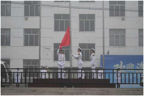 伴随着激昂的《义勇军进行曲》,五星红旗迎着朝阳冉冉升起,全体师生庄严肃立,向国旗行注目礼,庄严的国歌回荡在校园上空,同学们的眼神中饱含对祖国的崇敬与热爱。