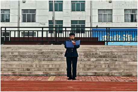 学生代表以《以青春之名,赴时代之约》为主题,在国旗下发表演讲,号召同学们不忘初心、牢记使命,不负韶华,以实际行动践行“请党放心,强国有我”的青春誓言。