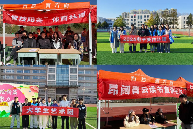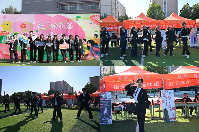 活动现场,十余个社团沿运动场周边有序排布,构成一片特色鲜明的“社团矩阵”,从图文并茂的海报、生动形象的宣讲,多角度展现了我院社团蓬勃向上的精神风貌。